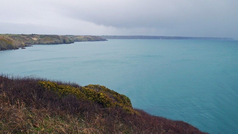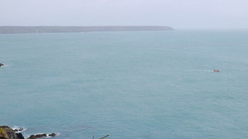 Although we started out in bright sunshine, we could see a band of heavy rain heading towards us over the sea.