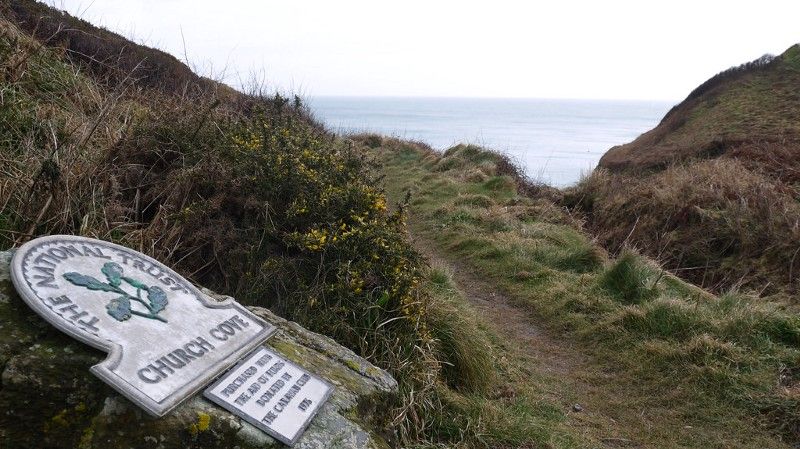 The path was easy going at this stage, through Church Cove, but much of the walk was up steep gradients to clifftops and down to beaches or coves.